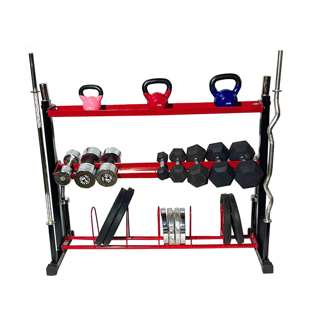 5 in 1 weight storage rack for plates rod dumbbells kettle bells and accessories